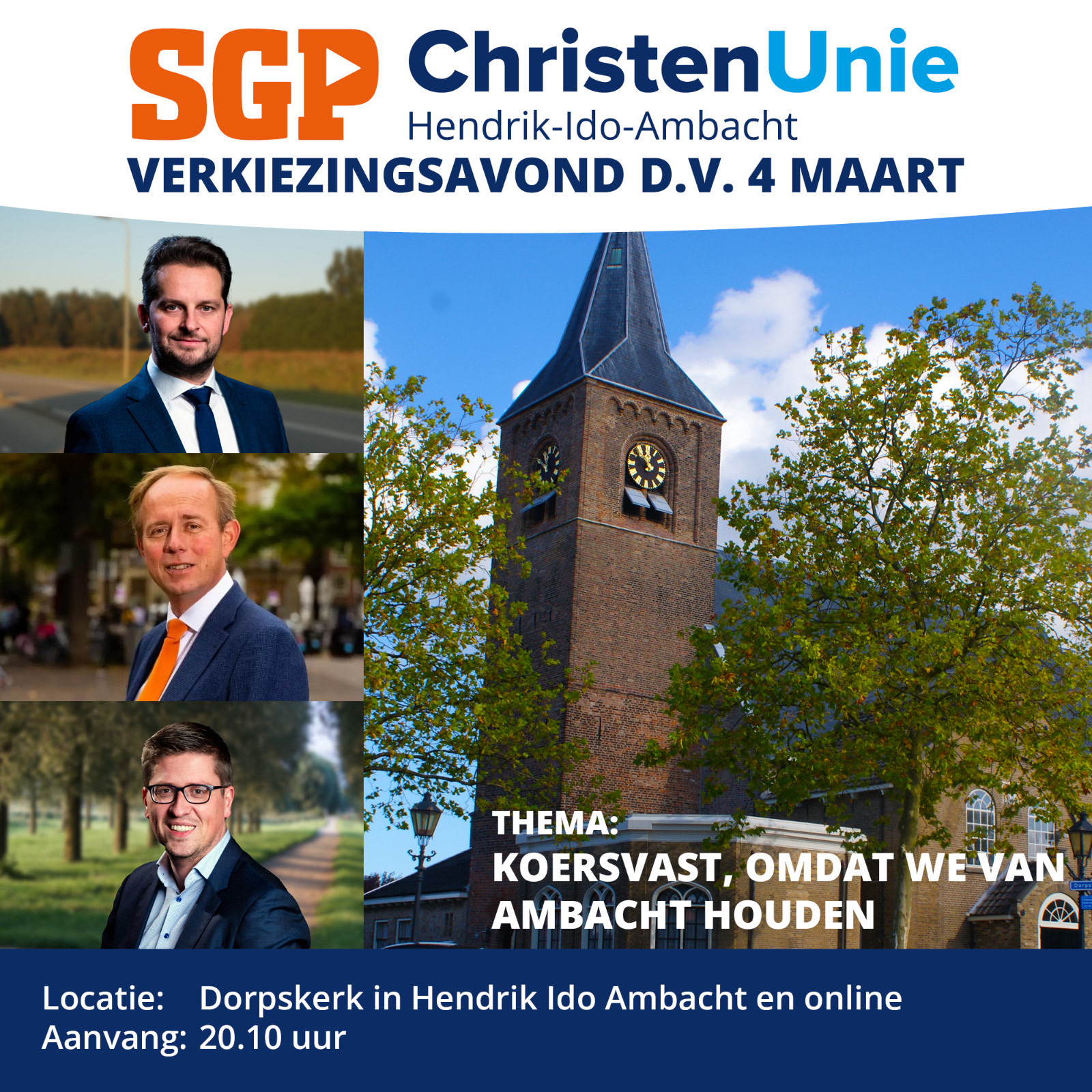 Op D.V. vrijdagavond 4 maart vindt de SGP-ChristenUnie verkiezingsavond plaats in de Dorpskerk in Hendrik-Ido-Ambacht.